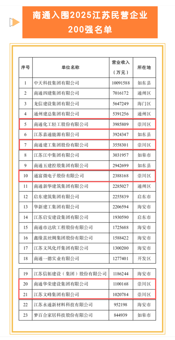 江苏民营企业百强发布,南通崇川民建会员企业上榜!