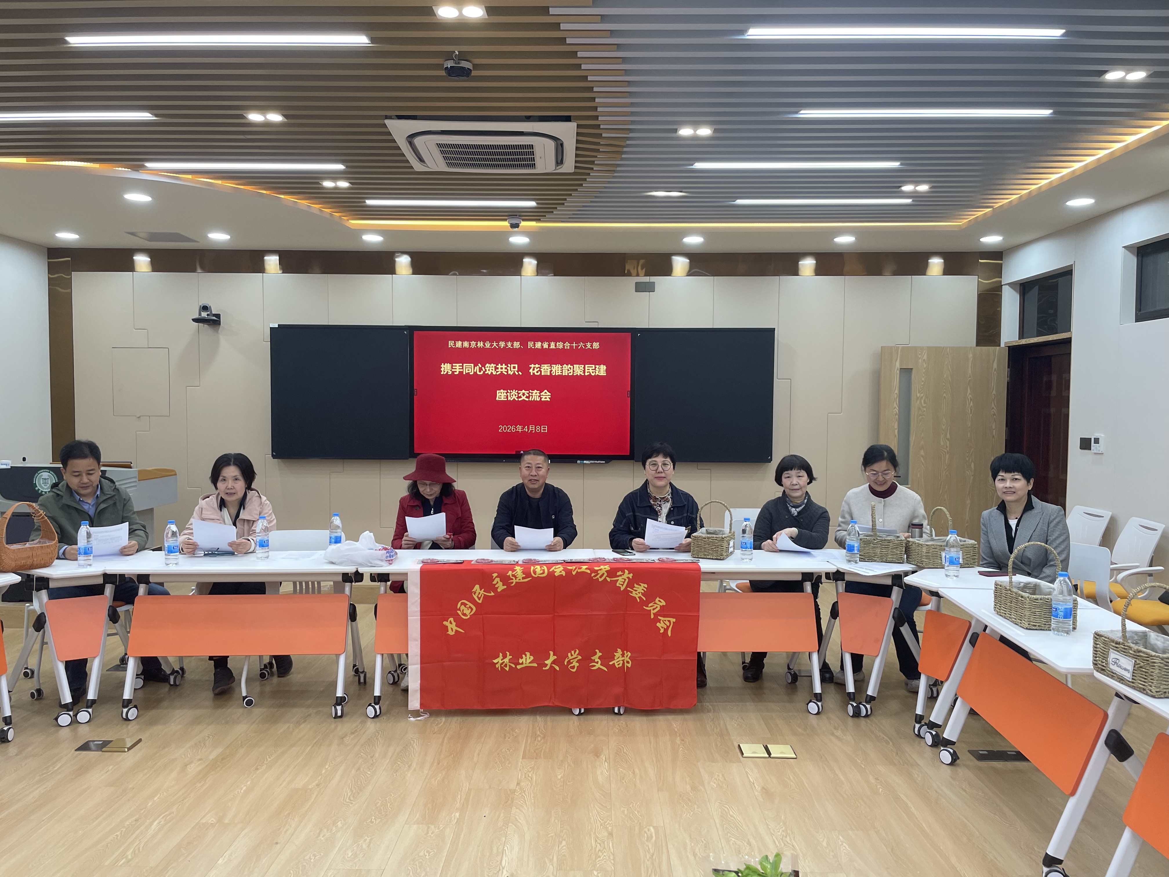 2026年4月8日下午,民建南京林业大学支部与省直综合十六支部在南京林业大学新庄校区联合举办学习两会精神主题活动暨“花开盛世、奋进强国”插花艺术交流。民建江苏省直工委副主委王鸿博,南京林业大学党委统战部张璐,民建南林大支部主委任浩及两支部会员共同参加。
